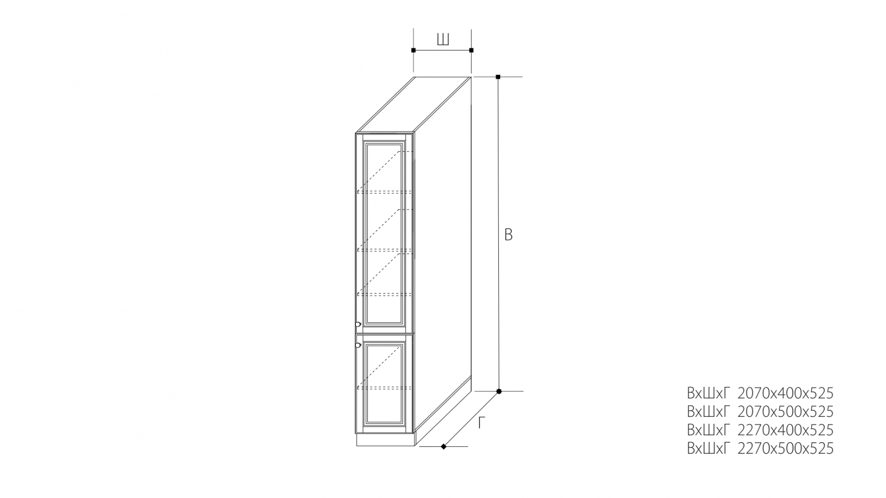 ВхШхГ: 2270х500х525 мм.